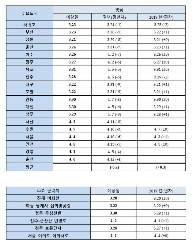 그래서 우리나라 벚꽃이 피는 시기를 지역별로 한번 찾아봤습니다.