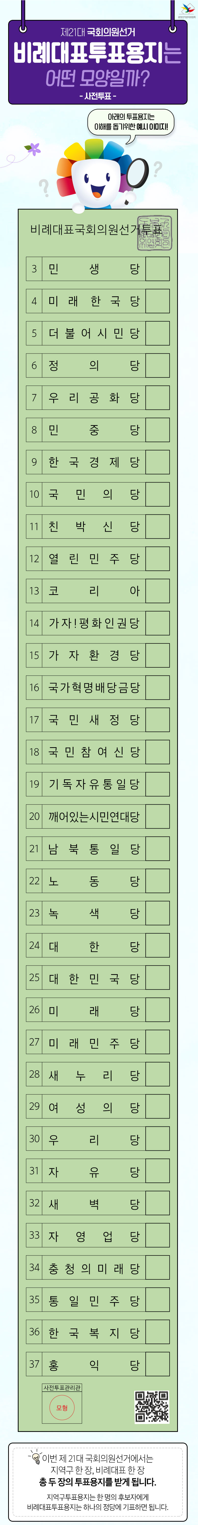 위의 링크를 클릭하시면 각 지역 후보자의 정책,공약을 확인하실수 있습니다. 당에 대해서 후보에 대해서 올바른 정보를 확인 후에 투표하시는데 도움이 되었으면 좋겠습니다.