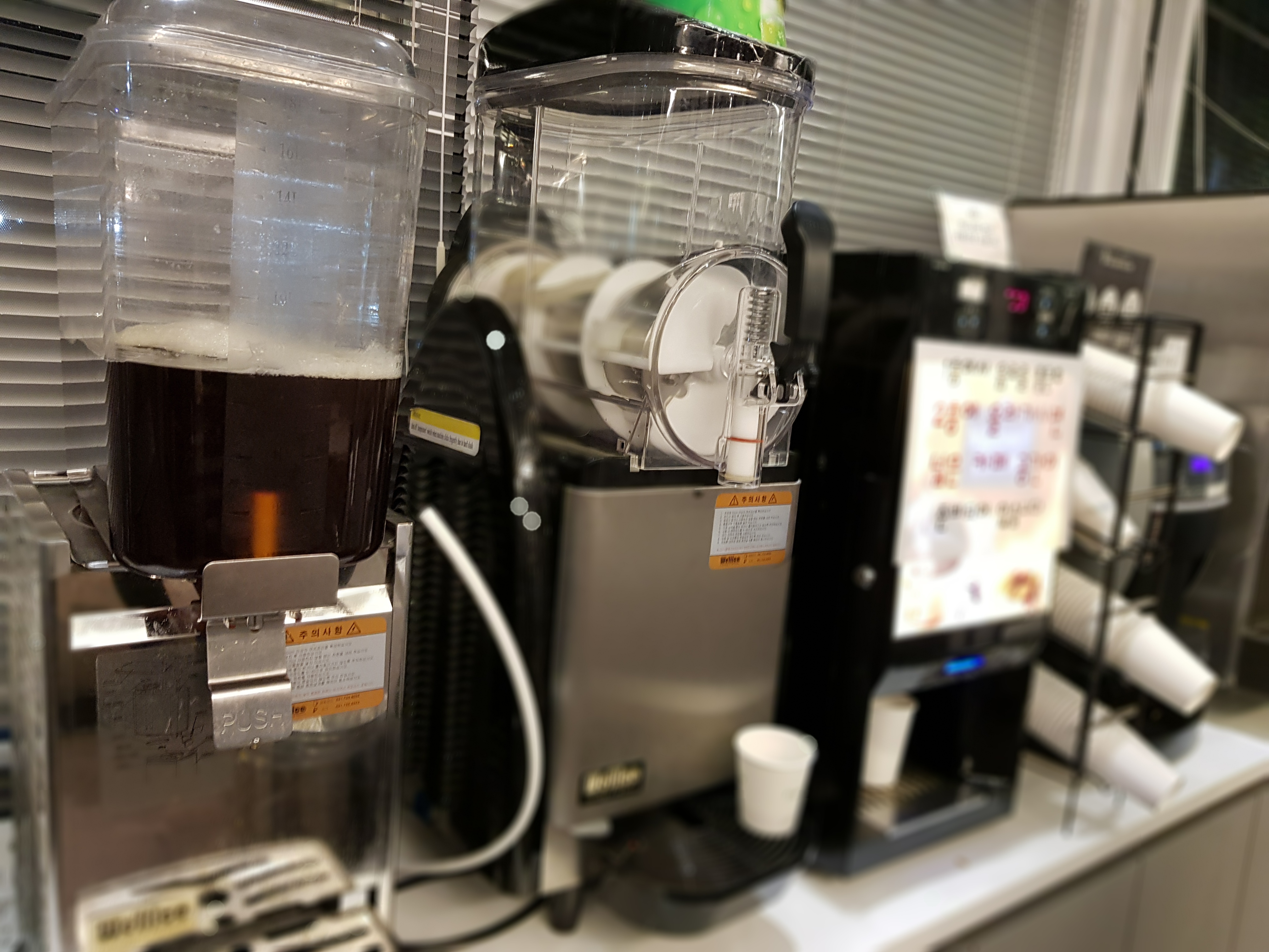 커피는 믹스커피를 마실수 있게 되어있고 여름에는 슬러쉬를 준비해주나 봐요. 대기손님들과 식사를 마친 손님들을 위한 공간이 이렇게 마련되어 있어서 참 좋았어요.