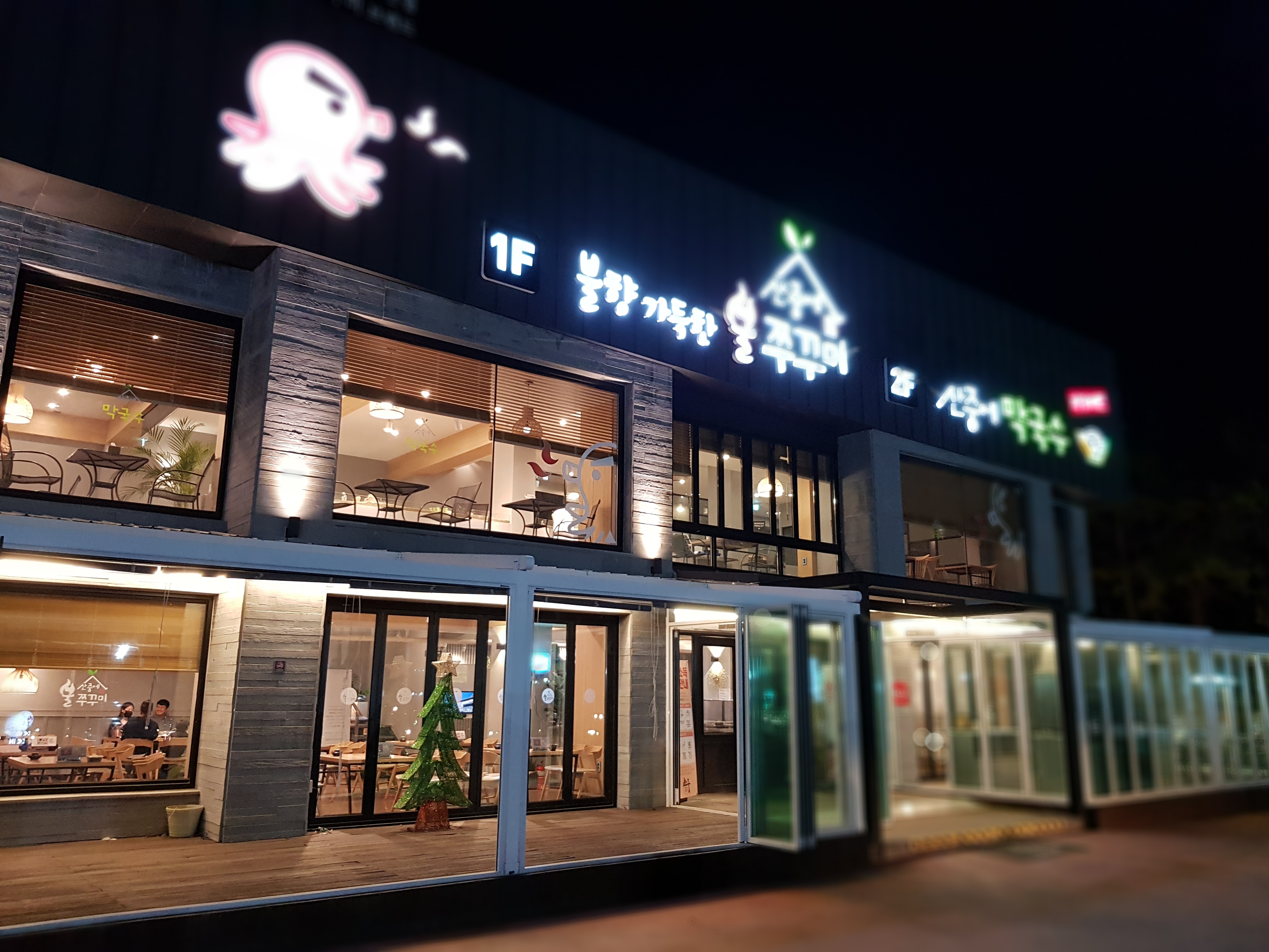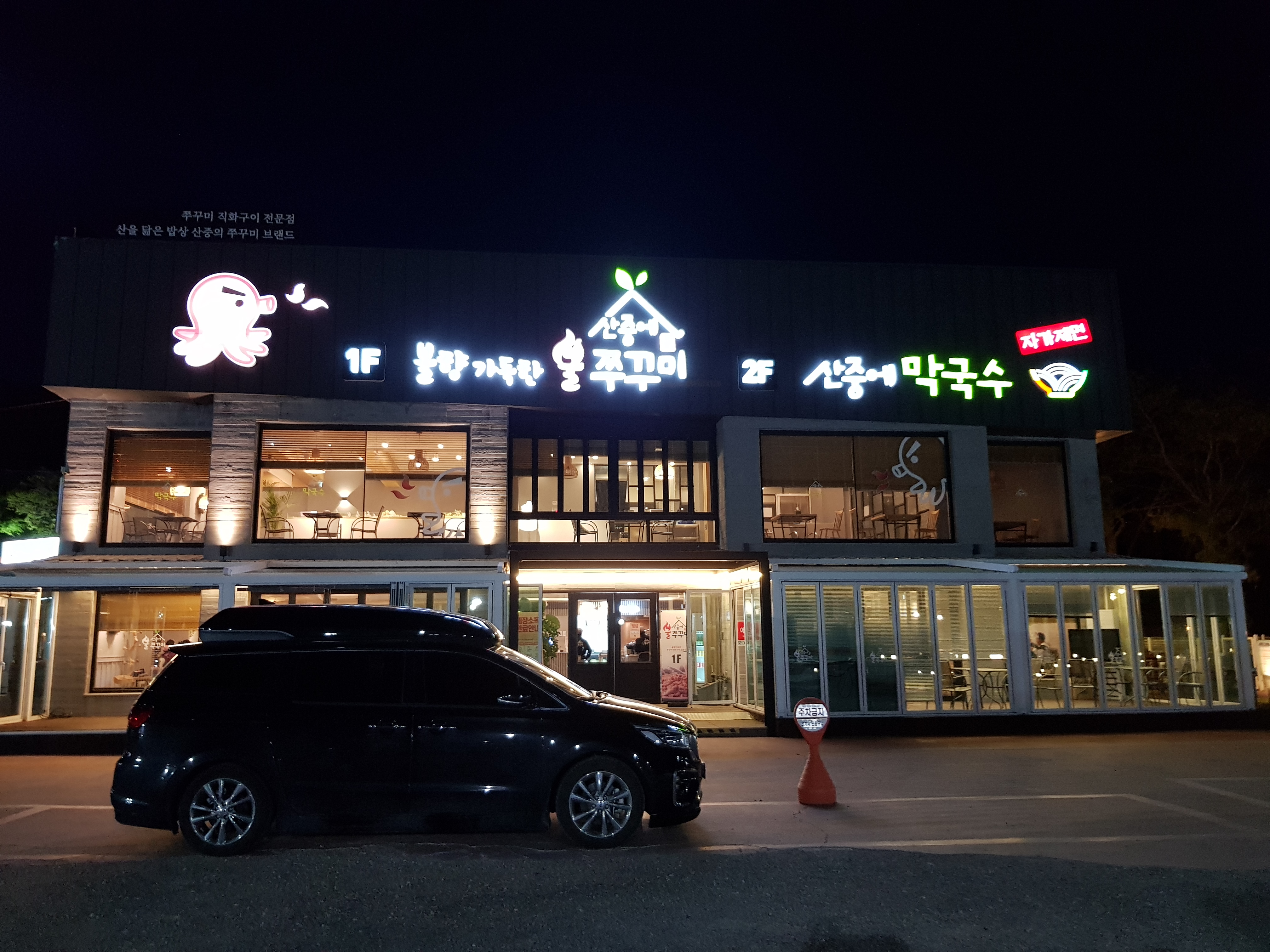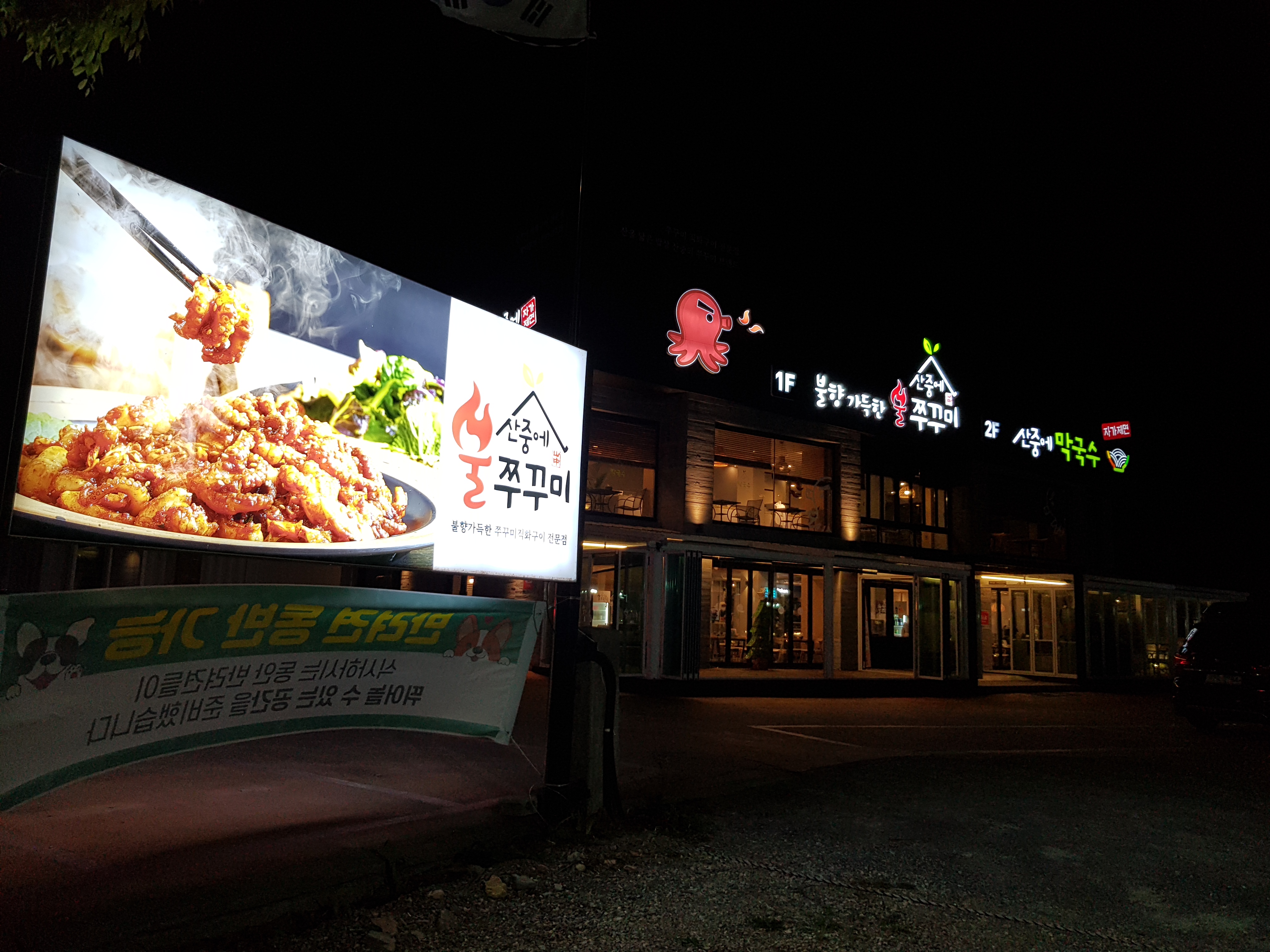 주차장 사진은 못 찍었지만 엄청 큰 규모의 주차장을 가지고 있었어요. 이곳 팔공산 인근 식당과 카페는 대부분 이렇게 큰 규모로 영업을 하고 있어요. 이 곳 쭈꾸미 집도 상당히 큰 부지에서 영업을 하고 있었습니다. 1층에는 불쭈꾸미집이고 2층에는 산중에 막국수라는 이름으로 영업을 하고 있었어요. 카페처럼도 함께 운영하고 있는 것 같았습니다.