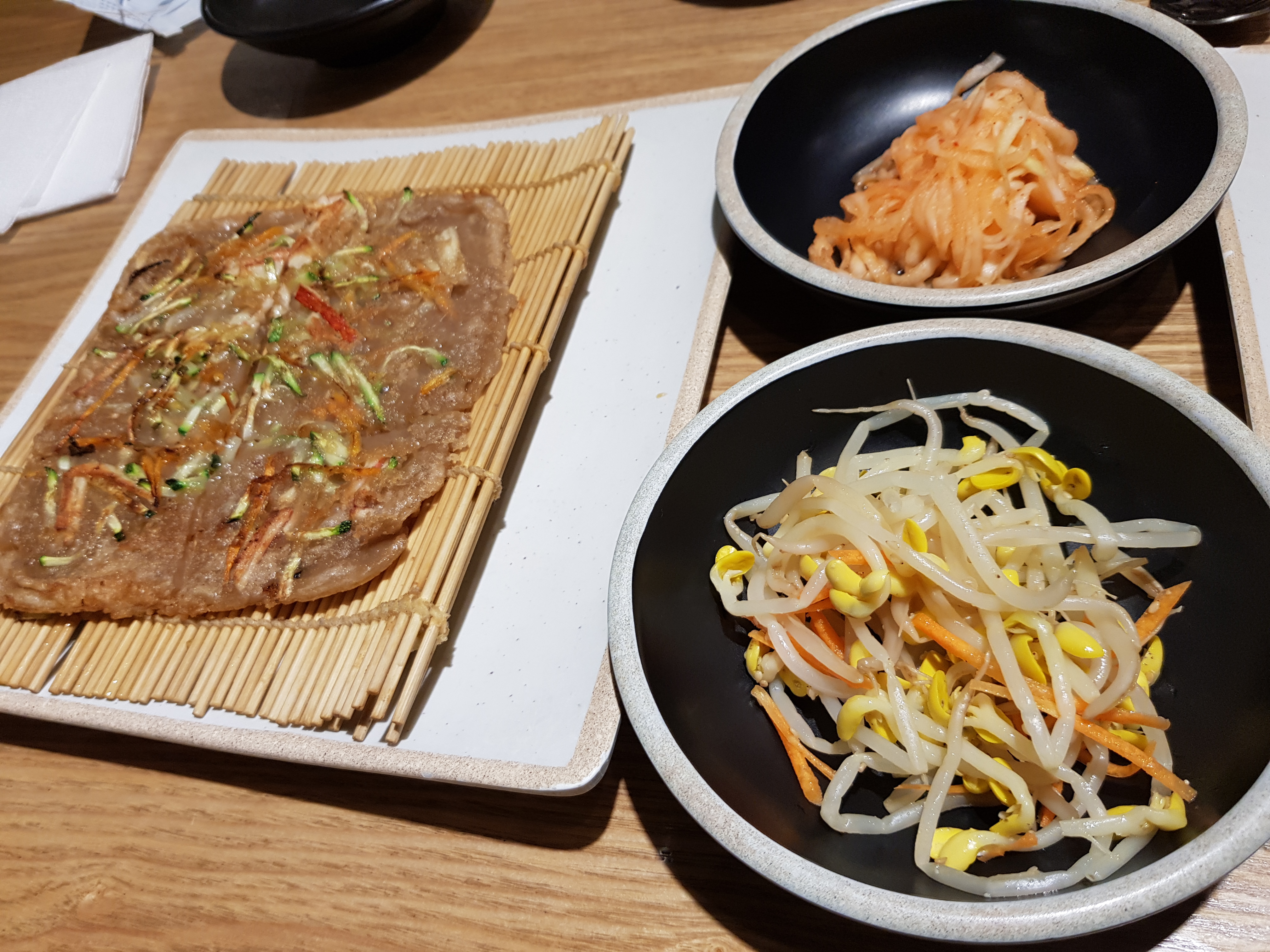 입구 쪽에는 기본 반찬을 다 먹고 얼마든지 더 추가로 먹을 수 있도록 리필 재료를 준비 해 놓았어요. 무우 무침이랑 콩나물 무침. 그리고 샐러드가 준비되어 있어요. 드레싱은 오리엔탈 드레싱이었어요. 제가 사진 찍을 때 종업원분이 깨끗하게 정리해 준다고 하시면서 잘 찍으라고 준비해 주셨어요. 서비스도 참 좋았던 것 같습니다. 주문받아주셨던 어린 남자 종업원 분도 친절하게 설명도 잘해주시면서 응대를 해 주셨어요.