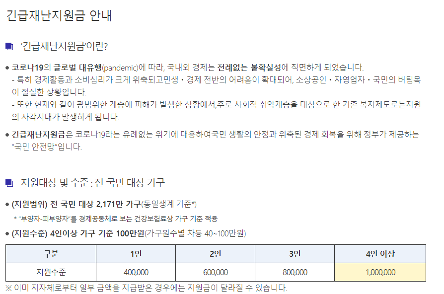 위의 링크를 클릭하면 긴급재난지원금 조회 서비스로 바로 연결 됩니다.